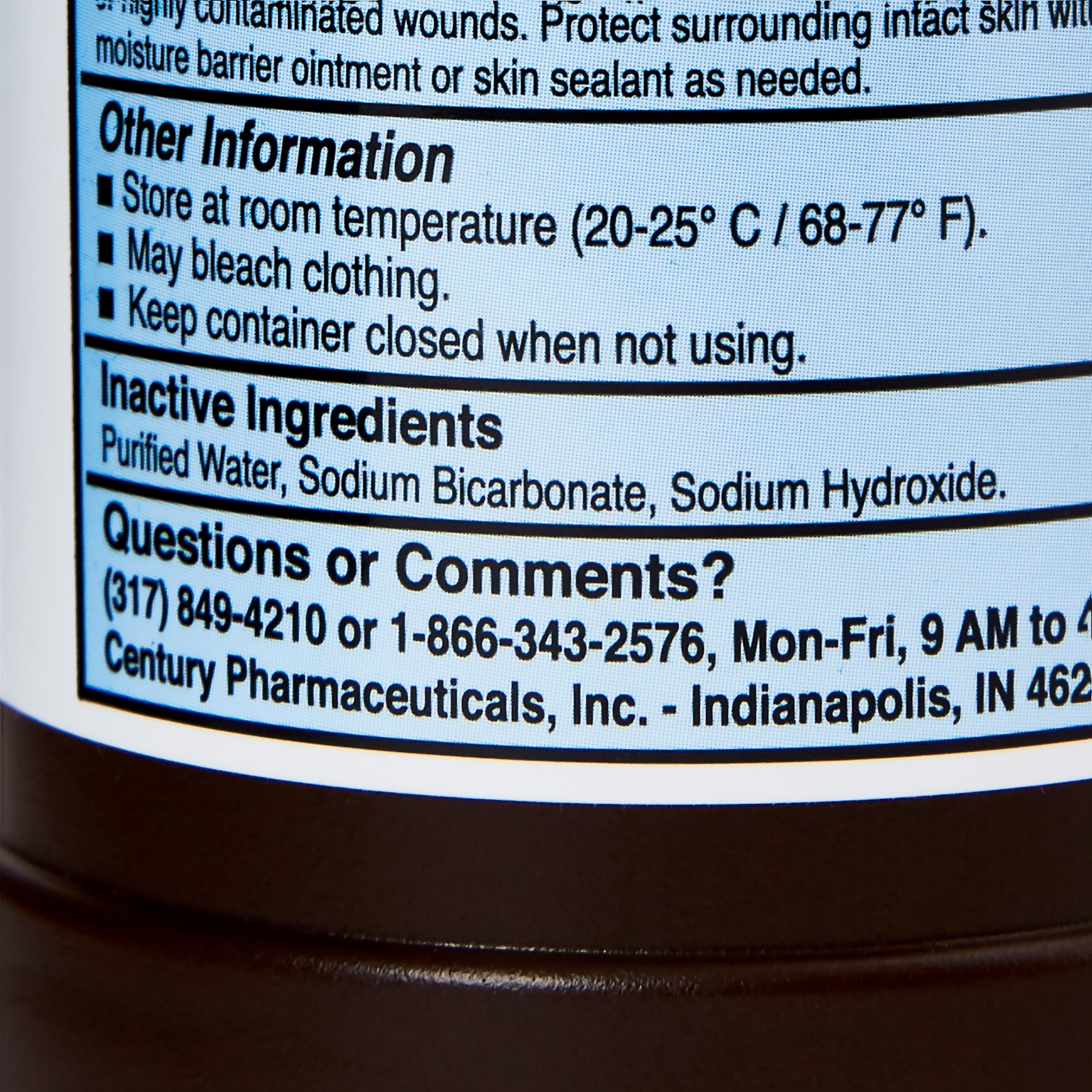 - Century’s Dakin’s Solution® Full Strength (Sodium Hypochlorite 0.50%) is Century Pharmaceuticals’ highest strength of Sodium Hypochlorite available, featuring the original in-house formula that’s been used for years for a wide variety of wound care and treatment